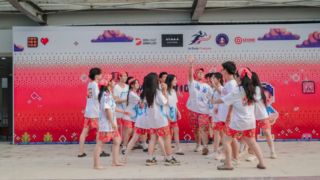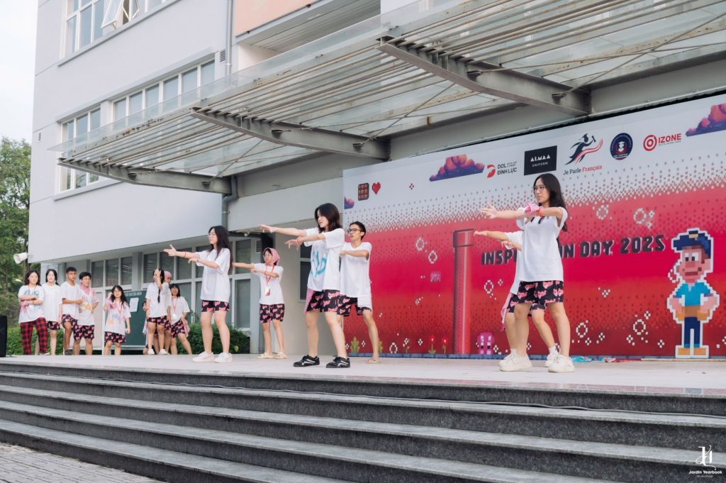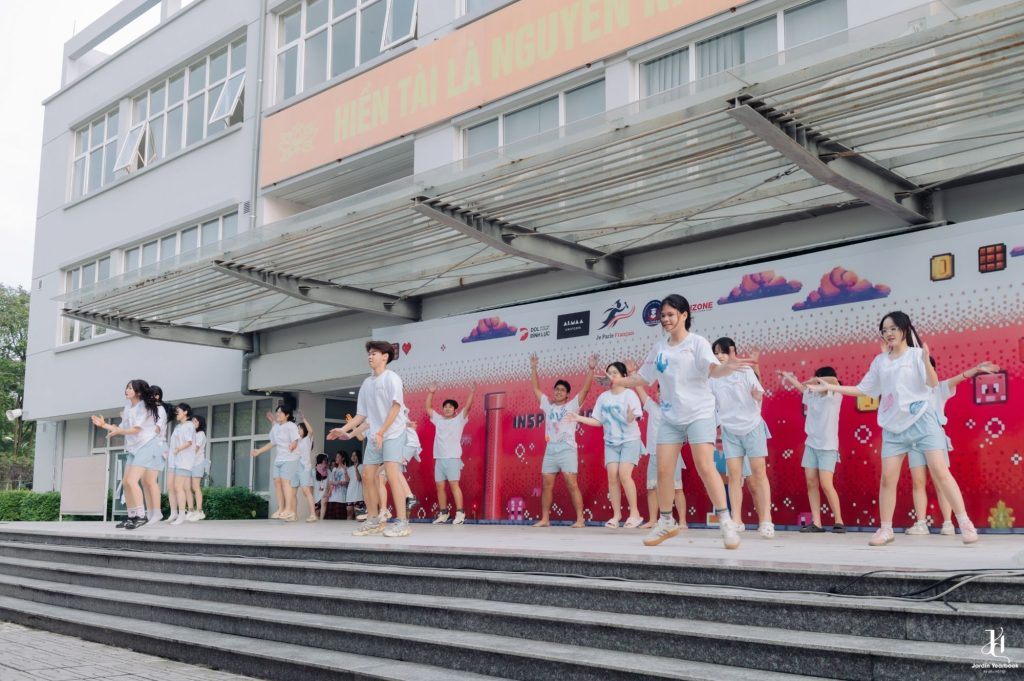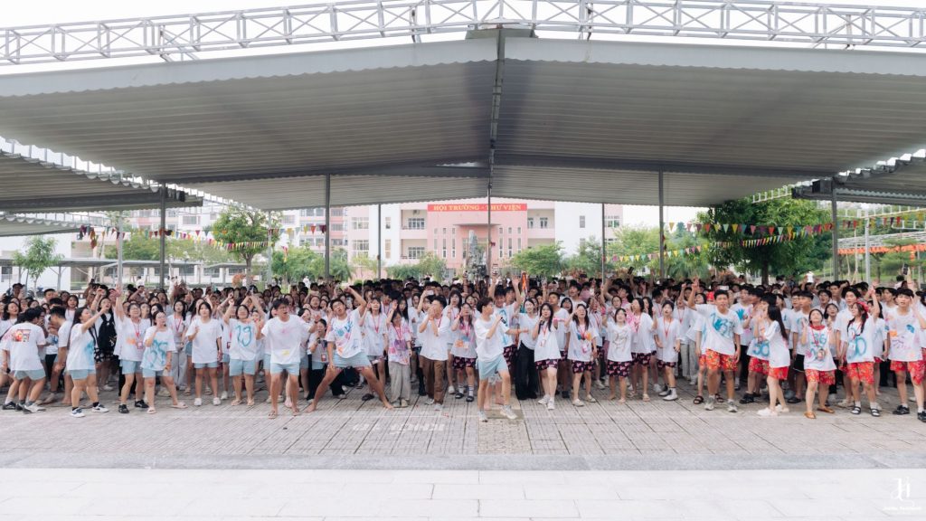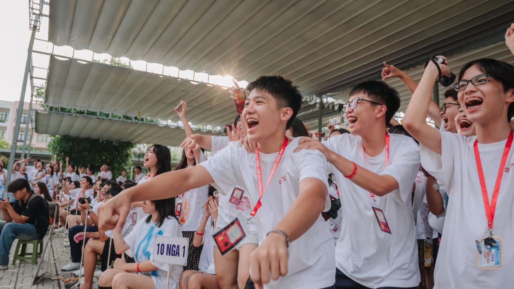 Chưa để sức nóng hạ nhiệt, phần cheer battle kế đến đã đốt cháy toàn bộ. Cả sân trường như cùng hoà vào một nhịp đập, một thanh âm. Tiếng hô vang, tiếng cười đùa, những cái “thumbs down” trêu vui, tất cả hoà quyện thành một bản giao hưởng đậm sắc “Huệ”. Thành viên của mỗi đảo đều hoà mình vào bầu không khí nhiệt huyết, khản cả họng vì bài cheer rực cháy.