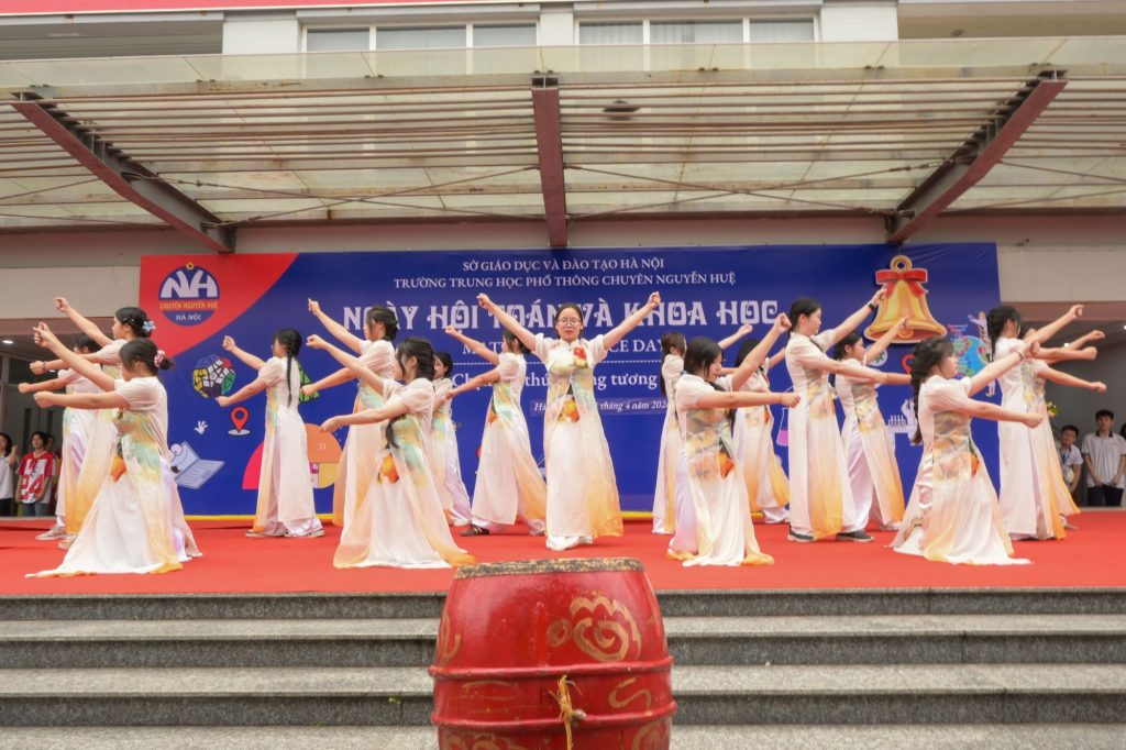 Khối chuyên Sinh nối tiếp chương trình bằng tiết mục văn nghệ vô cùng đặc sắc. Lấy cảm hứng từ giá trị văn hoá và tinh hoa của người Việt Nam, “Di hoả tinh hoa” của các bạn đã mang đến trải nghiệm âm nhạc mãn nhãn về cả thính giác và thị giác.